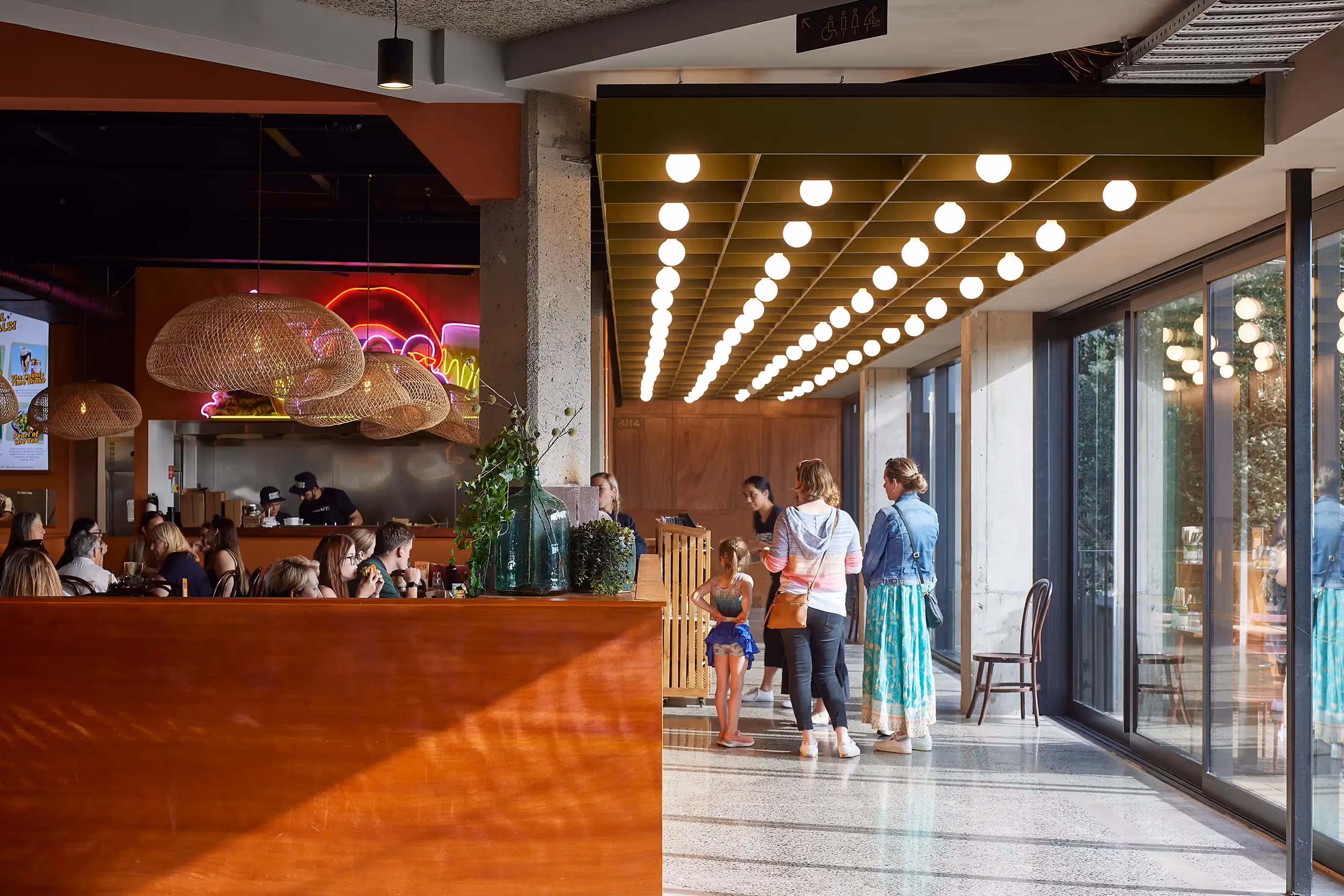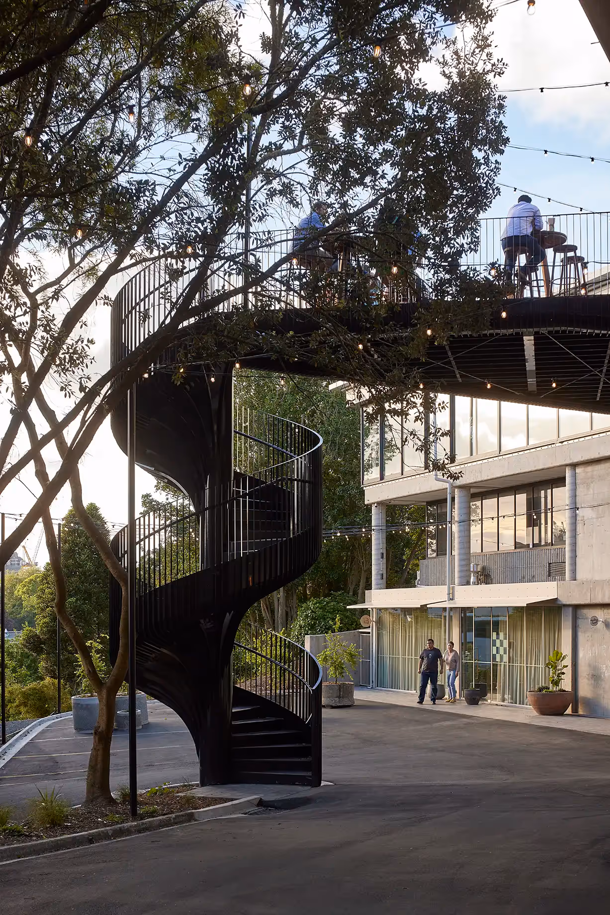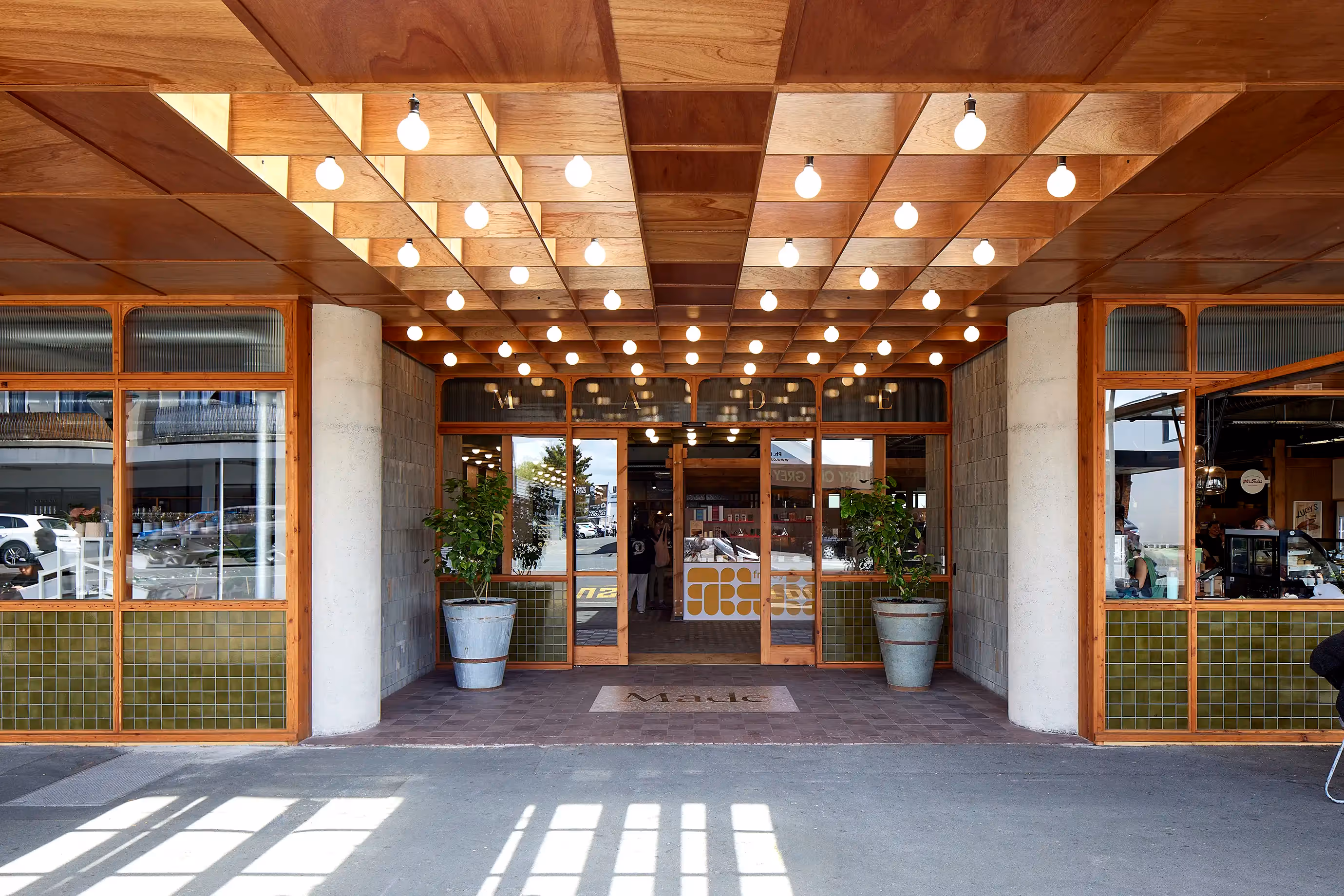 Nestled in the centre of Grey Street, MADE has redefined the retail and hospitality community of Hamilton East. In order to reconnect people with the river, the architecture intended to create a sense of immersion in the riverside landscape. A steel spiral staircase acts as both a visual anchor and a means of connecting the street level market with the 'sheds' below. Inherent in MADE's character, timber joinery adds warmth, innovation, and a sense of heritage that reflects Hamilton East's past. Through a thoughtful blending of materiality, MADE emerges as a vibrant space for Kirikiriroa.