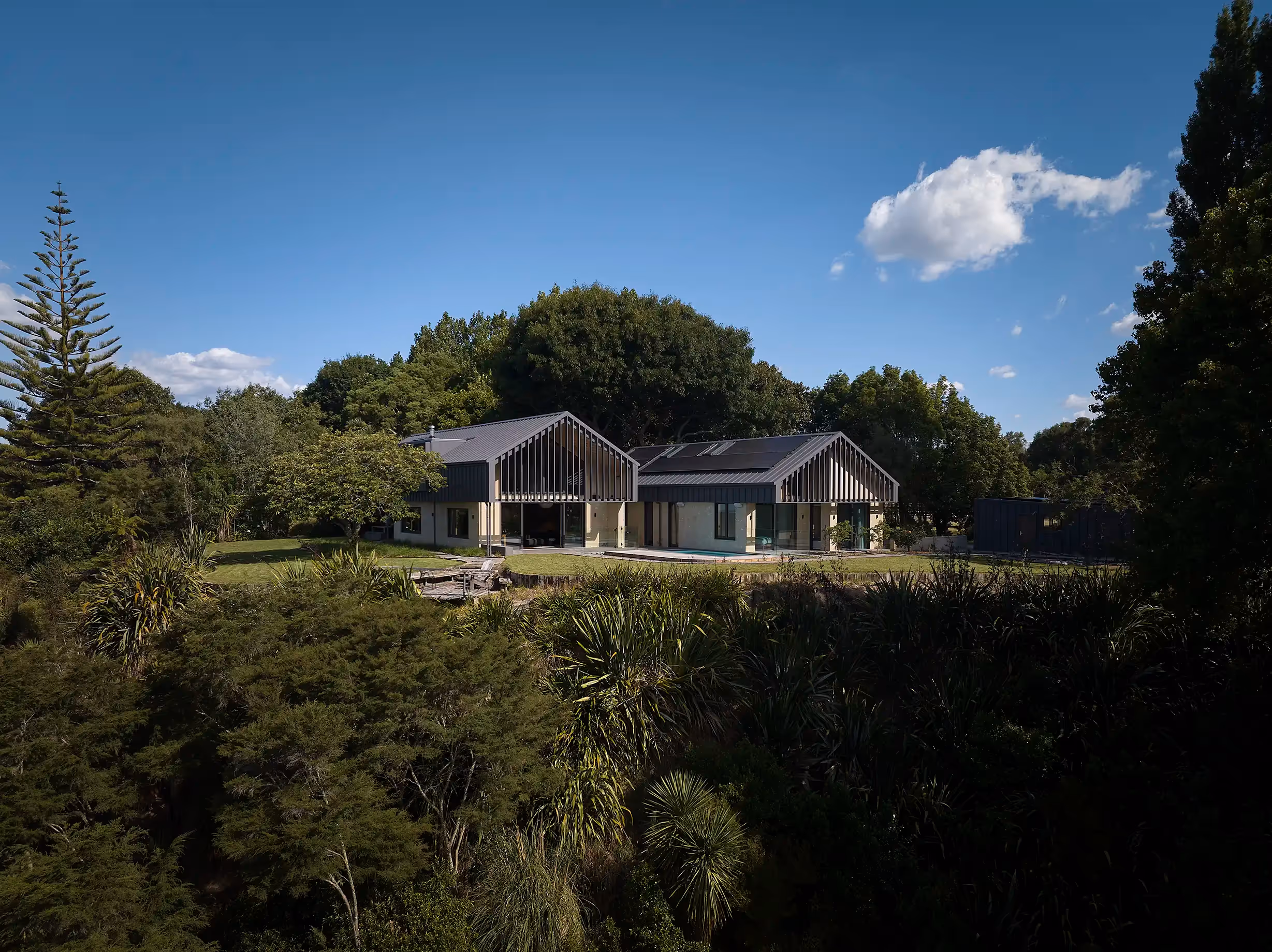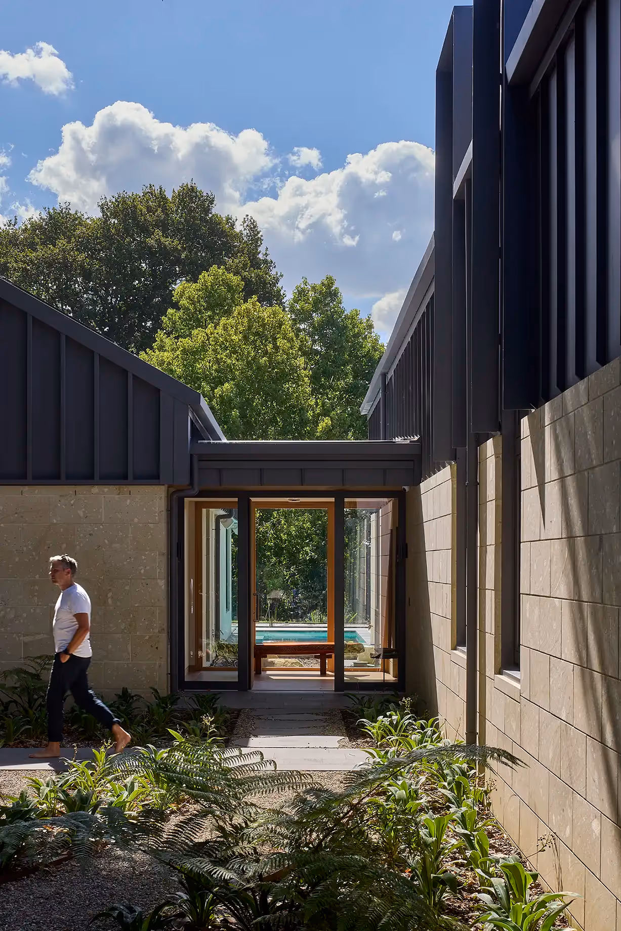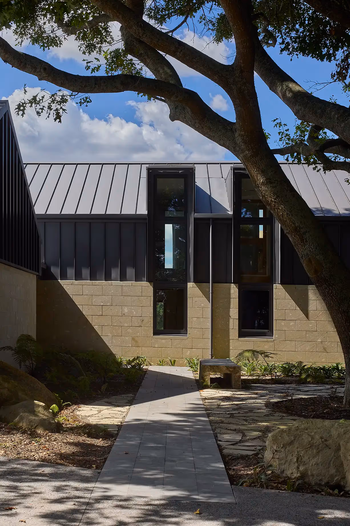 This modern, energy-efficient home embraces its setting with grace and clarity.  Established trees are carefully preserved and integrated, grounding the house  in its landscape. Meticulous material selection and refined detailing elevate  each space, while thoughtful planning of structure and form results in a low-energy home offering year-round comfort. Considered forms and precisely placed windows frame views and light, creating a rich interplay between architecture and nature.