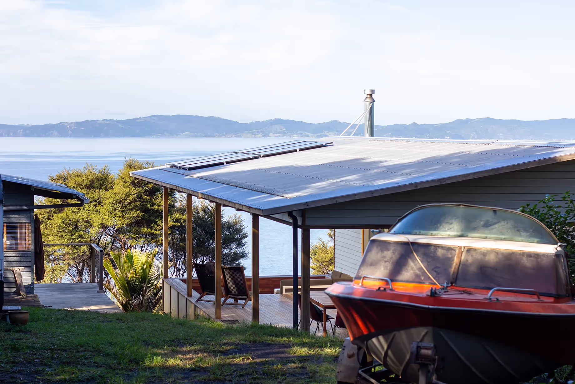 The project takes inspiration from the cabins Harry and his father built some years ago out of a recycled Skyline garage. The design carefully considers details to maintain the agrarian charm inherent in the cabins that the family has grown to love. Tim, Harry’s dad, reckons the word “outcome” objectifies the project and feels too definitive… he prefers the term “the resultant building,” which is certainly more fitting for a project that is still, slowly, one weekend at a time, receiving refinement.